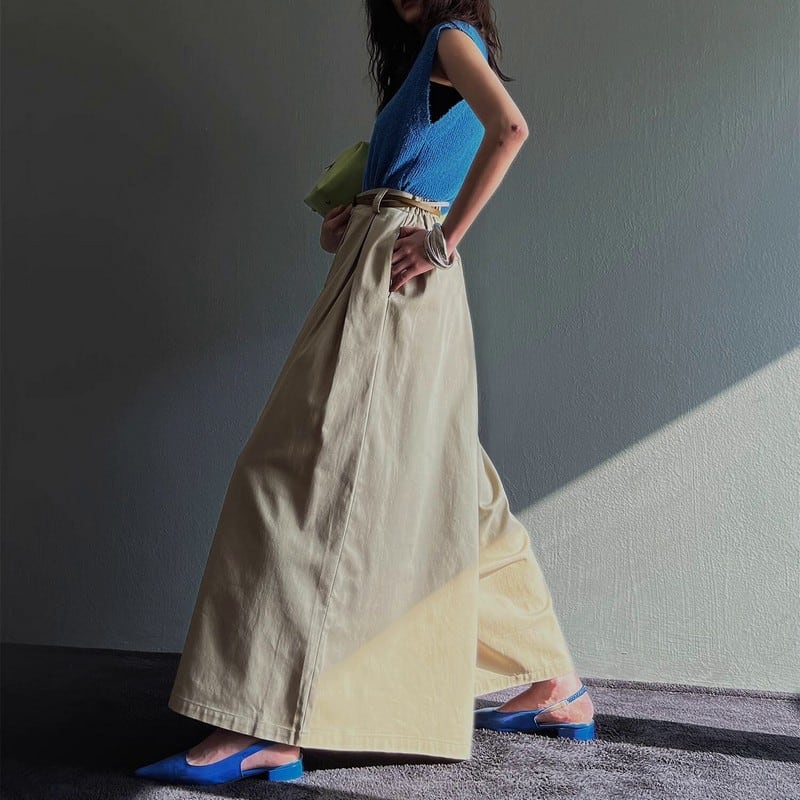 v -neck vest top + high waist pleated wide leg pants W00298