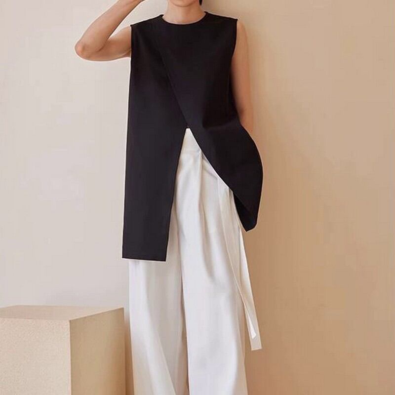 前後差のあるデザインがさりげないアクセントとなり、シンプルながらも存在感のある一着です。