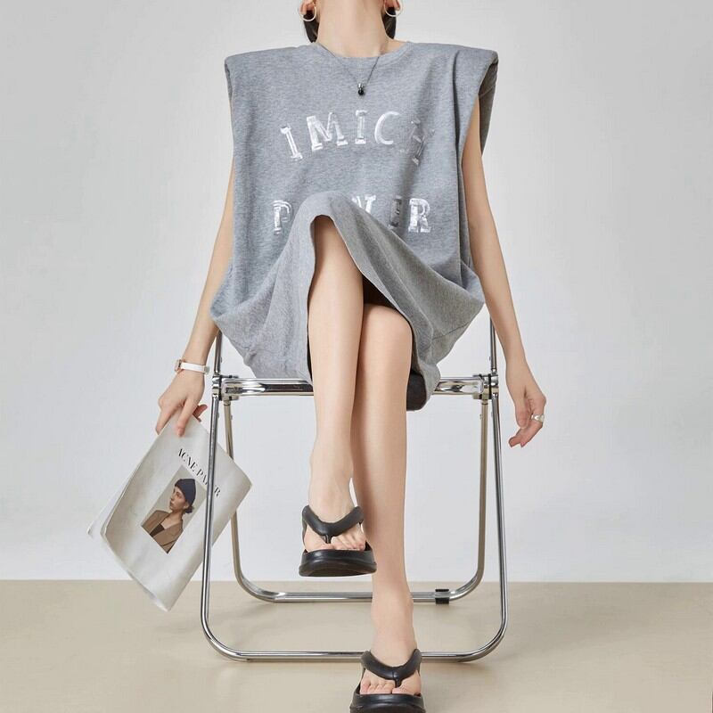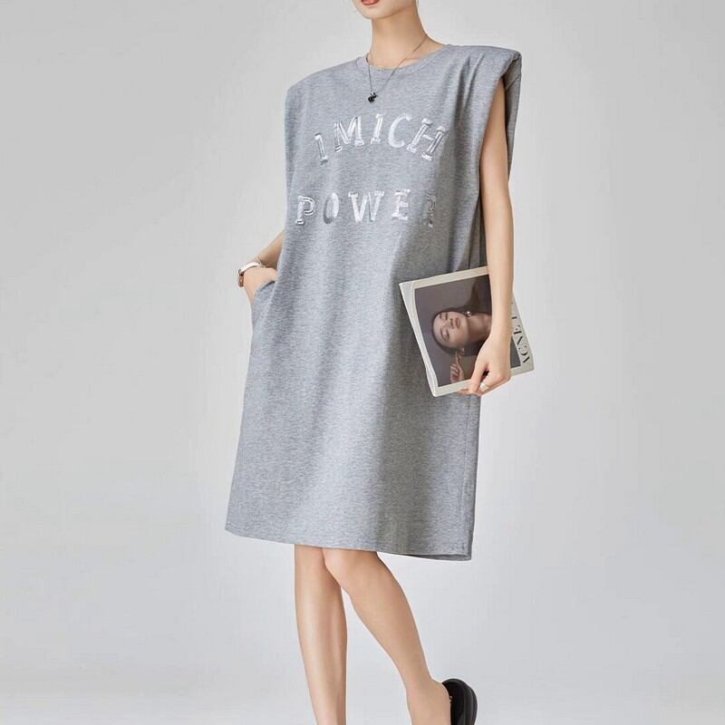 Shoulder Pad A-Line T-Shirt Dress W00373