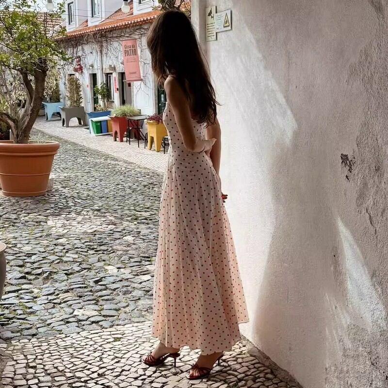 シンプルながらも洗練されたデザインのロングキャミソールワンピース。