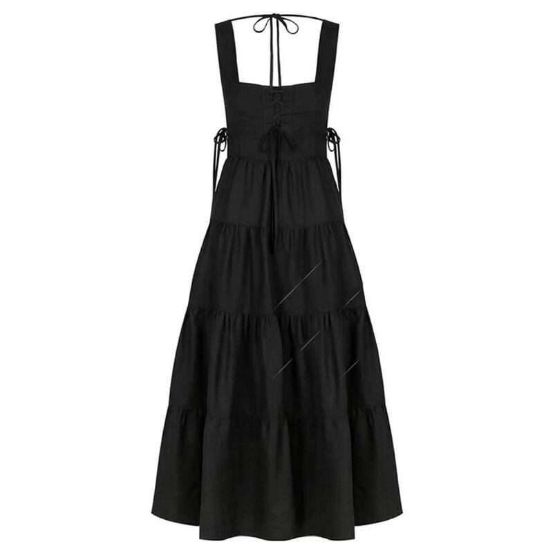 Back desined Tiered Square Cut Long Dress W00368