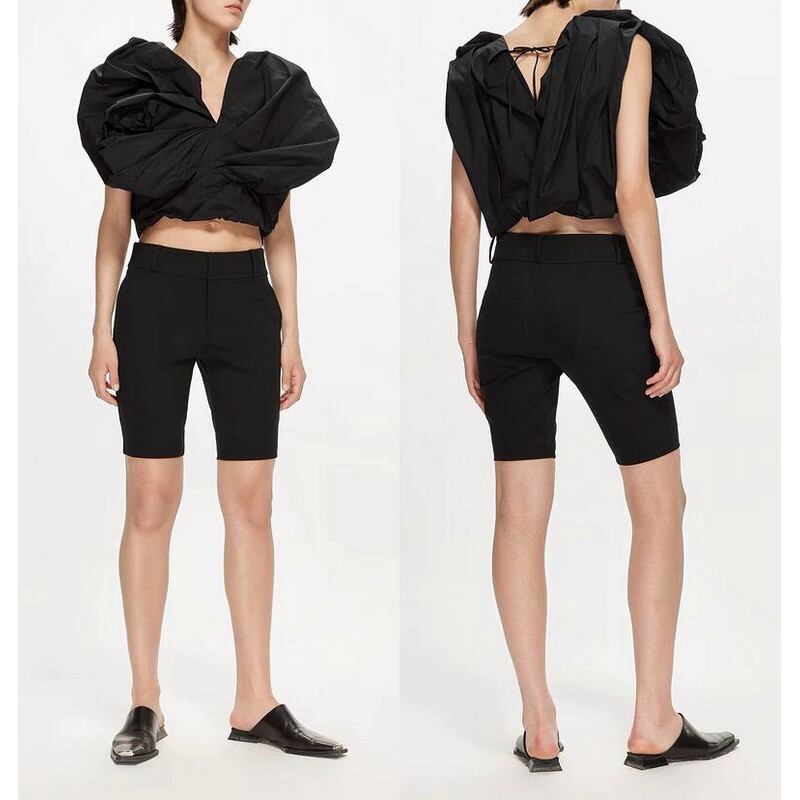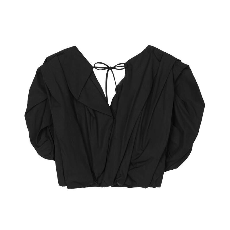 Balloon Sleeve V-Neck Cropped Tops W00438