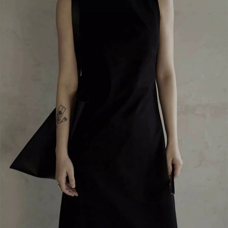 大胆なバックオープンデザインが目を惹く、Aラインシルエットのマキシドレス。